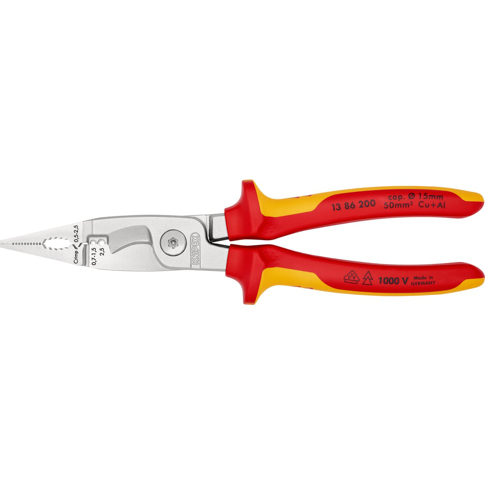 В нашем магазине «Главэлектрика» в Муроме, вы можете приобрести товар: «Электромонтажные клещи Knipex VDE, 6-в-1, 200 мм, диэлектрические, хром, 2К ручки, KN-1386200SB» с доставкой по г. Муром.