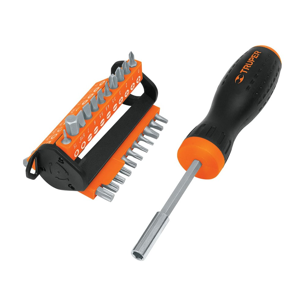 Набор бит 33 шт Truper DMP-33 13595 предназначен для работы с резьбовыми соединениями, их монтажа и демонтажа. Биты крепятся на стержень отвертки. Двухкомпонентная рукоятка не скользит в руке, что обеспечивает дополнительный контроль в работе.