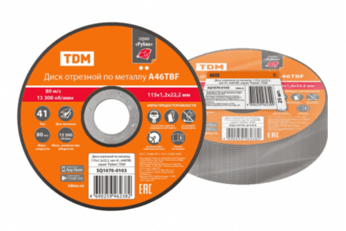 Диск отрезной по металлу, 115х1,2х22,2, тип 41, A46TBF, серия Рубин, TDM - идеальный выбор для профессионалов, которым требуется точное и эффективное резание металлических изделий.