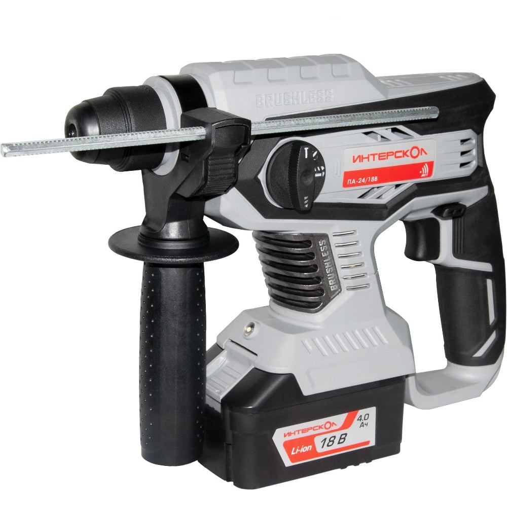 Аккумуляторный перфоратор ИНТЕРСКОЛ ПА-24/18В 579.0.0.70 идеален для работы в местах, не оснащенных электричеством. Имеет три режима: сверление, сверление с ударом, долбление. Благодаря бесщеточному двигателю достигается высокая производительность. Система крепления SDS-plus обеспечивает простую замену оснастки. Наличие светодиода позволяет освещать рабочую область при эксплуатации перфоратора в затемненных помещениях.