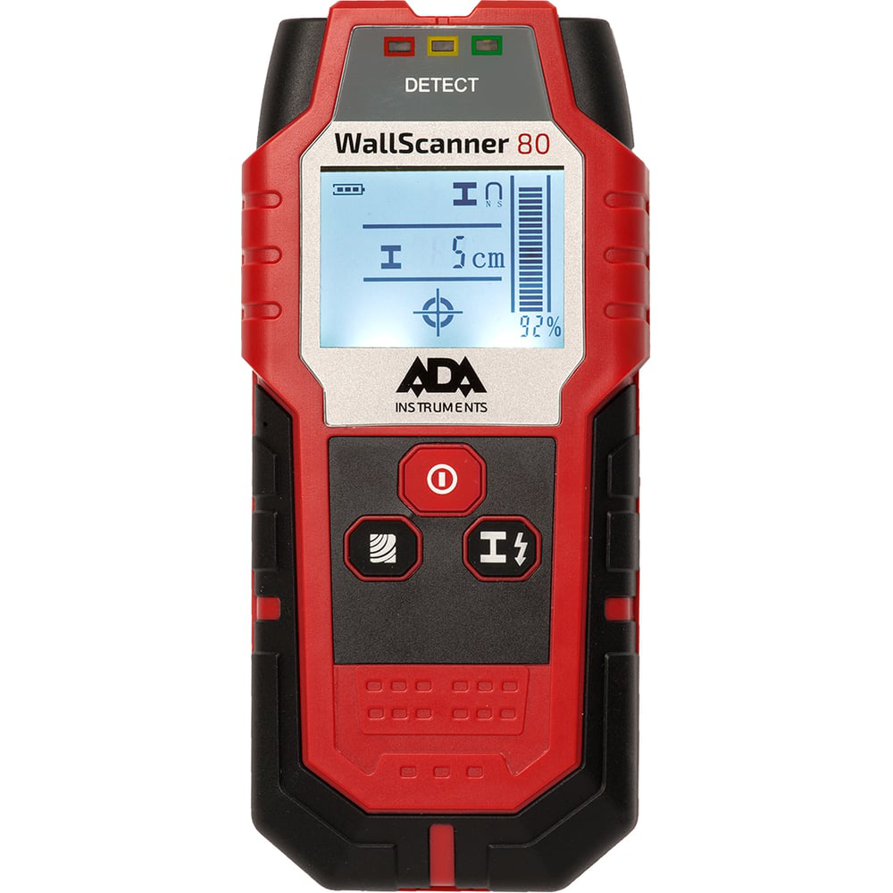 Детектор проводки ADA Wall Scanner 80 А00466 позволяет находить в стенах провода под напряжением, деревянные перекрытия, черные и цветные металлы. Корпус из прочного материала и протекторные накладки делают модель устойчивой к ударам и падениям. Для удобства пользователя прибор оснащается звуковой и светодиодной индикацией (при обнаружении объекта загорается красная лампочка, при отсутствии искомых материалов - зеленая). Детектор находит применение в сфере ремонта и снижает риск случайного повреждения внутренних элементов стен.