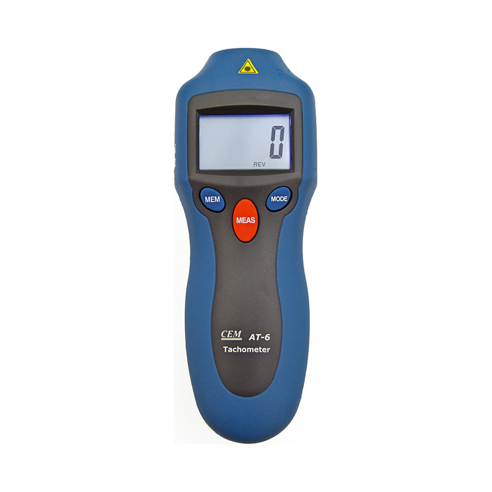 Тахометр AT-6 СЕМ 481264 позволяет быстро и точно измерять количество оборотов в минуту на расстоянии от 50 до 500 мм. При бездействии 10 секунд, он автоматически отключается. Прибор работает от 1 батарейки 9 В. В комплект поставки входит чехол, в котором удобно хранить и транспортировать устройство.