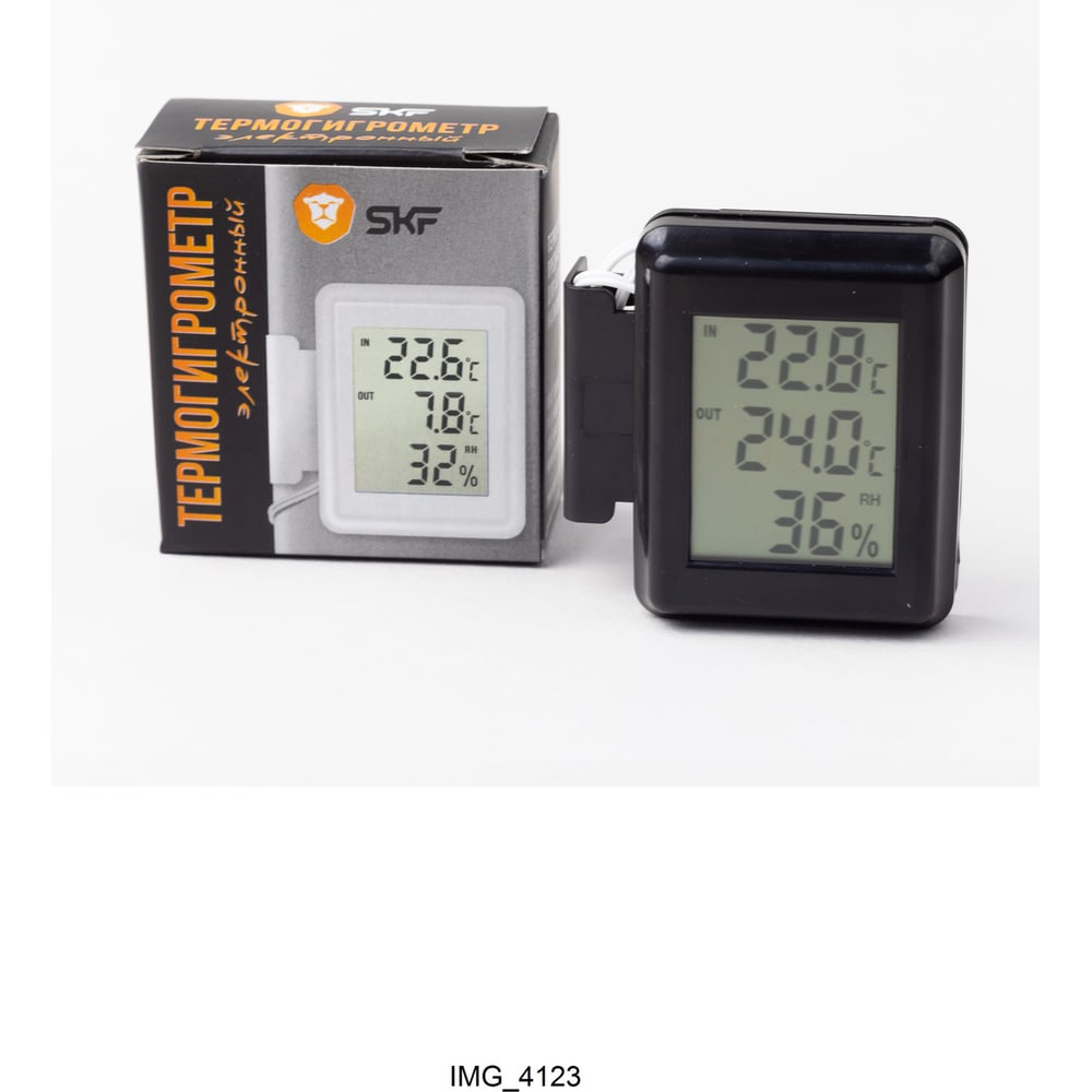 Термогигрометр оконный электронный бытовой с выносным датчиком – прибор для измерения влажности и температуры в помещении и на улице. Цифровой уличный термометр и влагомер для дома устанавливается на створку окна со стороны помещения. Наружный датчик крепится на двухсторонний скотч на расстоянии 5 см от рамы, что делает показания абсолютно точными, так как на них не влияет температура самой рамы. Характеристики термогигрометра:· Шкала деления температуры 0,1 °С· Шкала деления влажности 1 %· Точность измерения температуры +/- 1 °С· Точность измерения влажности +/- 5 % RH· Питание от 1 батарейки 1,5 В (входит в комплект).