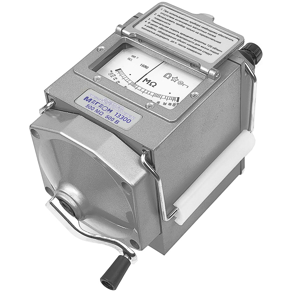 Мегаомметр предназначен для измерения сопротивления изоляции. Благодаря широкому рабочему диапазону его можно использовать в различных отраслях промышленности. Для достижения высокоточных результатов необходимо учитывать параметры внешней температуры и влажности. Номинальное напряжение составляет 500 В. Тестовое напряжение: 500 В.