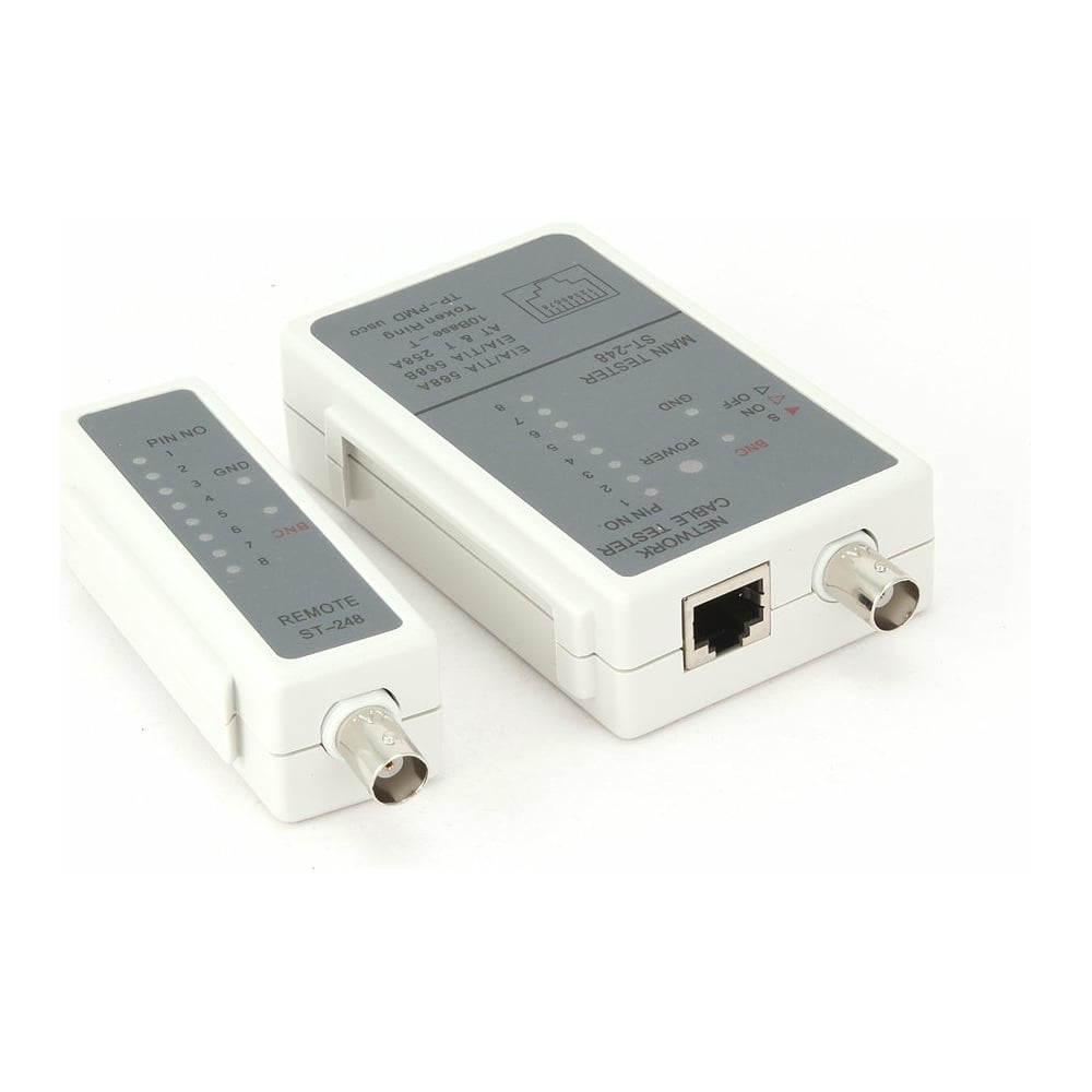 Тестер Cablexpert LAN для RJ-45, RG-58 NCT-1 помогает быстро определить неисправность в кабельной сети, протестировать кабель на обрыв, замыкание, проверить целостность экрана и правильность разводки кабеля. Корпус модели изготовлен из прочной пластмассы, что обеспечивает долгий срок службы и стойкость к повреждениям. Портативный тестер подходит для проверки кабелей различных типов.