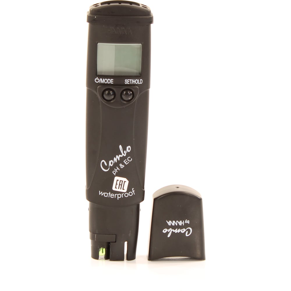 Кондуктометр Hanna 98130 – измеритель показателей увлажняющих растворов: уровня pH, температуры и электропроводимости. Устройство умеет автоматически выбирать фактор пересчёта электропроводимости и выполнять термокомпенсацию. Оно может работать в условиях 100%-й влажности и под дождём. Кондуктометр HI 98130 предназначен для измерения pH, проводимости и температуры водных растворов. Для определения последней применяется встроенный в корпус термодатчик с нержавеющей оболочкой. Прибор поставляется с измерительным электродом HI 73127 в виде полипропиленового картриджа, заполненного гелеобразным электролитом. К измерителю электрод подключается метровым кабелем посредством интерфейса BNC. Датчик работает при положительных температурах до 50 °C в диапазоне водородного показателя 0…14 pH. Герметичность корпуса сенсора обеспечена парой уплотнительных полипропиленовых колец. Функция компенсации по температуре, которая отображается в °C или °F, повышает точность результатов в зависимости от термического состояния рабочей среды. Устройство по шкале измерения pH калибруется по одной либо двум точкам с функцией распознания до пяти буферных растворов.