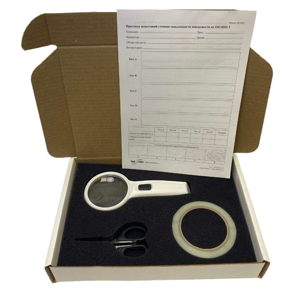 Набор для оценки запыленности поверхности по ISO ООО ТЕХИНТЕСТ 8502-3 ОСЗ-8502 предназначен для оценки количества и размера частиц пыли на стальных поверхностях, подготовленных к нанесению защитных покрытий (окраске). Пыль на очищенной поверхности может уменьшить адгезию покрытия, что приведет к преждевременному разрушению защитного покрытия. Данный набор используется в соответствии с рекомендациями ISO 8502-3 в качестве теста по методу “годен/не годен”, или для перманентной регистрации степени запыленности. В набор включены все формы и аксессуары, необходимые для проведения испытаний. Компактная защитная коробка со специальным ложементом в полной мере обеспечит сохранность содержимого набора. С помощью сравнительной таблицы степеней запылённости можно наглядно определить размер пылевых частиц и их количество. Благодаря наличию черной и белой подложек на пластине возможно регистрировать как темные, так и светлые частицы. В один протокол возможно внести до 5 результатов испытаний. Все результаты могут быть быстро записаны в специально отведенные места формы, что гарантирует качество испытаний и легкость их считывания. В протокол можно также занести результаты измерений параметры окружающей среды степень загрязнённости водорастворимыми солями по ISO 8502-6, 9 шероховатость поверхности (после струйной обработки) по ISO 8503-1 оценка подготовки стальной поверхности по ISO 8501-1