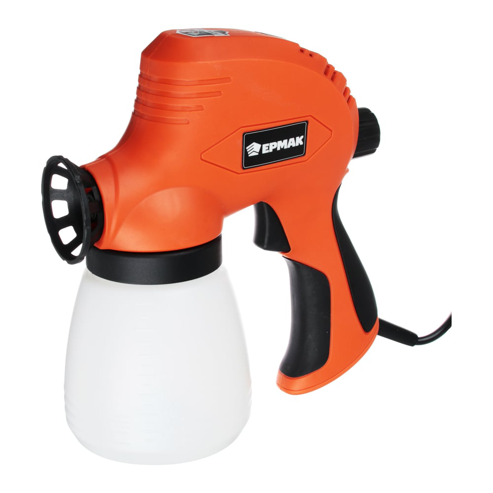 Для равномерного нанесения различных типов лакокрасочных покрытий разумно использовать специальный инструмент. Краскораспылитель электрический ЕРМАК ЭКР-110 равномерно, экономично и точно распыляет краску, образуя идеальное покрытие. Эргономичная ручка, невысокий вес прибора и удобное положение кнопок управления значительно облегчают процесс покраски. Краскопульт также может использоваться на даче для распыления побелки. Скорость работы – 320 г/мин. Мощность – 110 Вт.