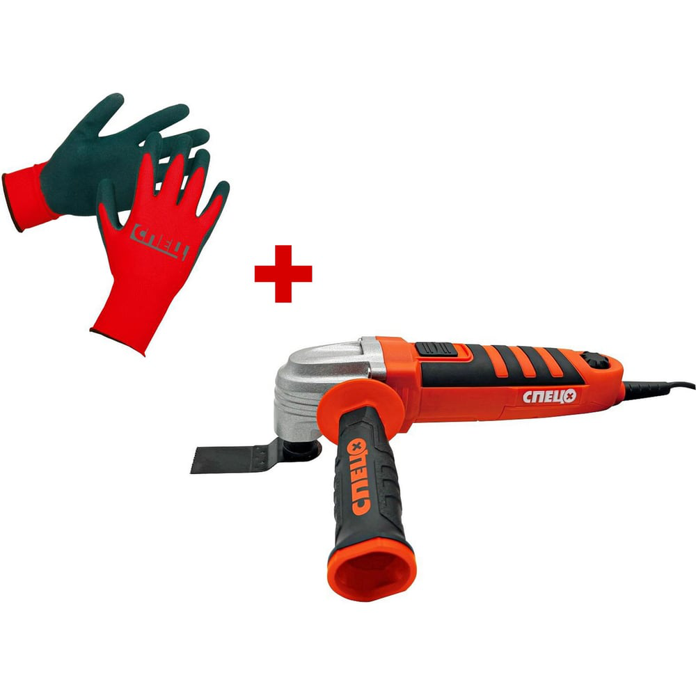 Многофункциональный инструмент СПЕЦ БМИ-400К, 350Вт, 6000-22000 колебаний/мин, 3 типа насадки, кейс + перчатки СПЕЦ-4040/ВС-136-0272