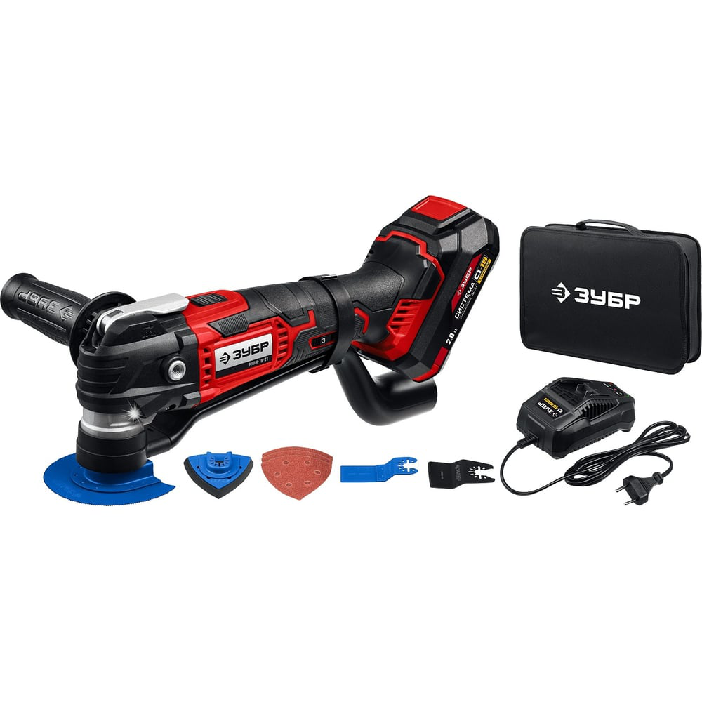Реноватор ЗУБР 18 В, 1 АКБ (2 Ач), набор насадок, сумка МФИ-18-21 - универсальное устройство для разных строительных работ (резка, шлифование), особенно в труднодоступных местах и в отсутствие доступа к электричеству. Большой угол колебаний 3 градуса в сочетании с широким спектром регулировки частоты обеспечивают эффективную работу с любым материалом. Расширенная комплектация включает в себя базовый набор насадок для начала работы сразу после покупки и удобную сумку для хранения и переноски.