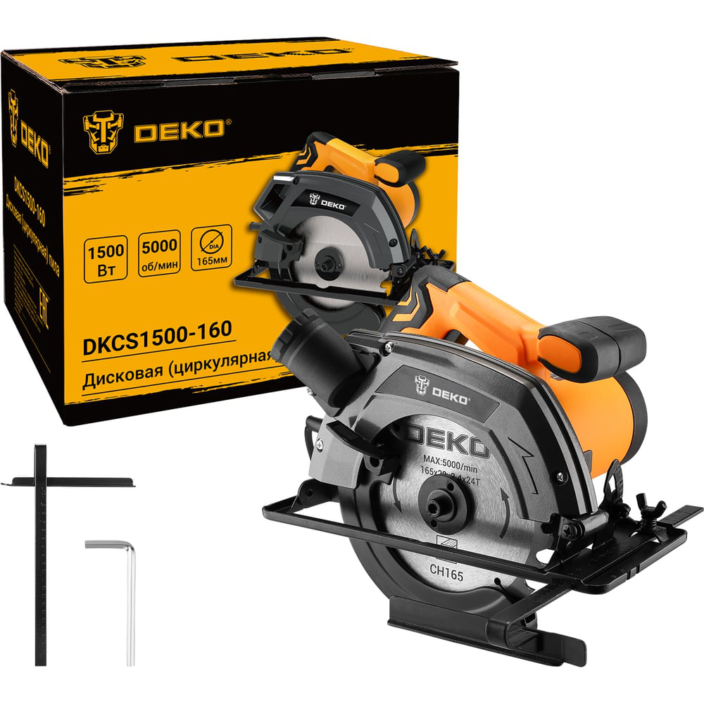 Дисковая (циркулярная) пила DEKO DKCS1500-160 предназначена для обработки древесины, фанеры, ДСП, пластика, для выполнения продольных и поперечных прямых пропилов под углом 45 и 90 градусов. Поставляется с пильным диском диаметром 165 мм. Специальный патрубок позволяет подключить пылесос для отвода опилок. В комплект входит шестигранный ключ, параллельная направляющая, 2 угольные щетки и руководство по эксплуатации . Характеристики: Диаметр пильного диска: 165 мм Мощность: 1500 Вт Число оборотов: 5000 об/мин Макс. глубина пропила под углом 45°: 30 мм Макс. глубина реза под углом 90°: 52 мм