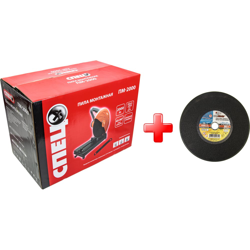 В нашем магазине «Главэлектрика» в Муроме, вы можете приобрести товар: «Монтажная пила Спец ПМ-2000, 2000 Вт, диск 355х3х25.4 мм + Круг отрезной 41 355x3х25.4 A24 Q BF 80 2» с доставкой по г. Муром.