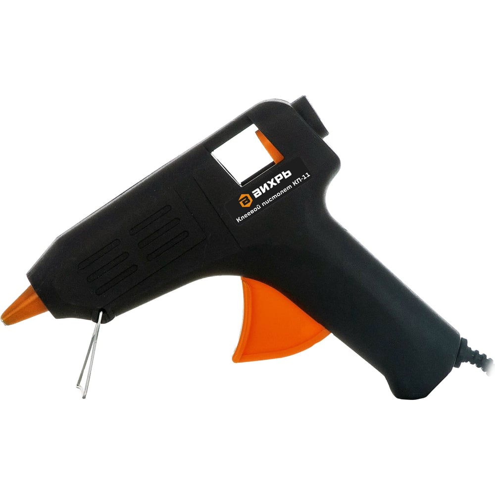Клеевой пистолет Вихрь КП-11 поможет быстро склеить поверхности из различных материалов. Устройство разогревает клей, поставляемый в виде стержня. Размягченный под воздействием температуры состав надежно скрепляет поверхности.Этот универсальный инструмент часто применяют декораторы, любители hand made.Отличительные особенности модели Вихрь КП-11:Клеевой состав обеспечивает универсальность применения. Он хорошо соединит различные материалы. Важное условие – поверхности должны быть сухими и чистыми.Мощность устройства составляет 80 Вт.Пистолет нагревается всего за 3-4 минуты. Это позволяет быстро приступить к работе.Специальная подставка на носике дает возможность работать без дополнительных приспособлений.Распространенный диаметр стержня в 11 мм позволяет легко найти расходники.Защита от капель убережет поверхности от порчи.Небольшой вес пистолета позволяет работать долго. Рука не устанет.В комплекте с устройством поставляются клеевые стержни. Поэтому можно сразу приступить к творчеству или отделке.Клеевой пистолет Вихрь КП-11 обеспечит надежную фиксацию таких поверхностей, как дерево, пластик, пенопласт, бумага, резина, полиуретан и других. Его полезно иметь в доме как любителям творчества, так и профессиональным строителям.