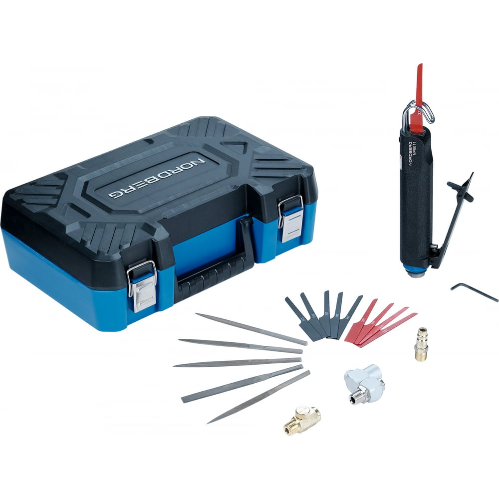 Пневмолобзик NORDBERG NP6011K подойдет для пропиливания материала толщиной 2 мм.Имеет выключатель с предохранителем от случайного включения.Для удобного хранения и транспортировки поставляется в специальном кейсе.Производитель и продавец товара несут гарантийные обязательства в отношении оборудования, использование которого было осуществлено не превышая допустимые технические характеристики заявленные производителем в Паспорте-Инструкции.