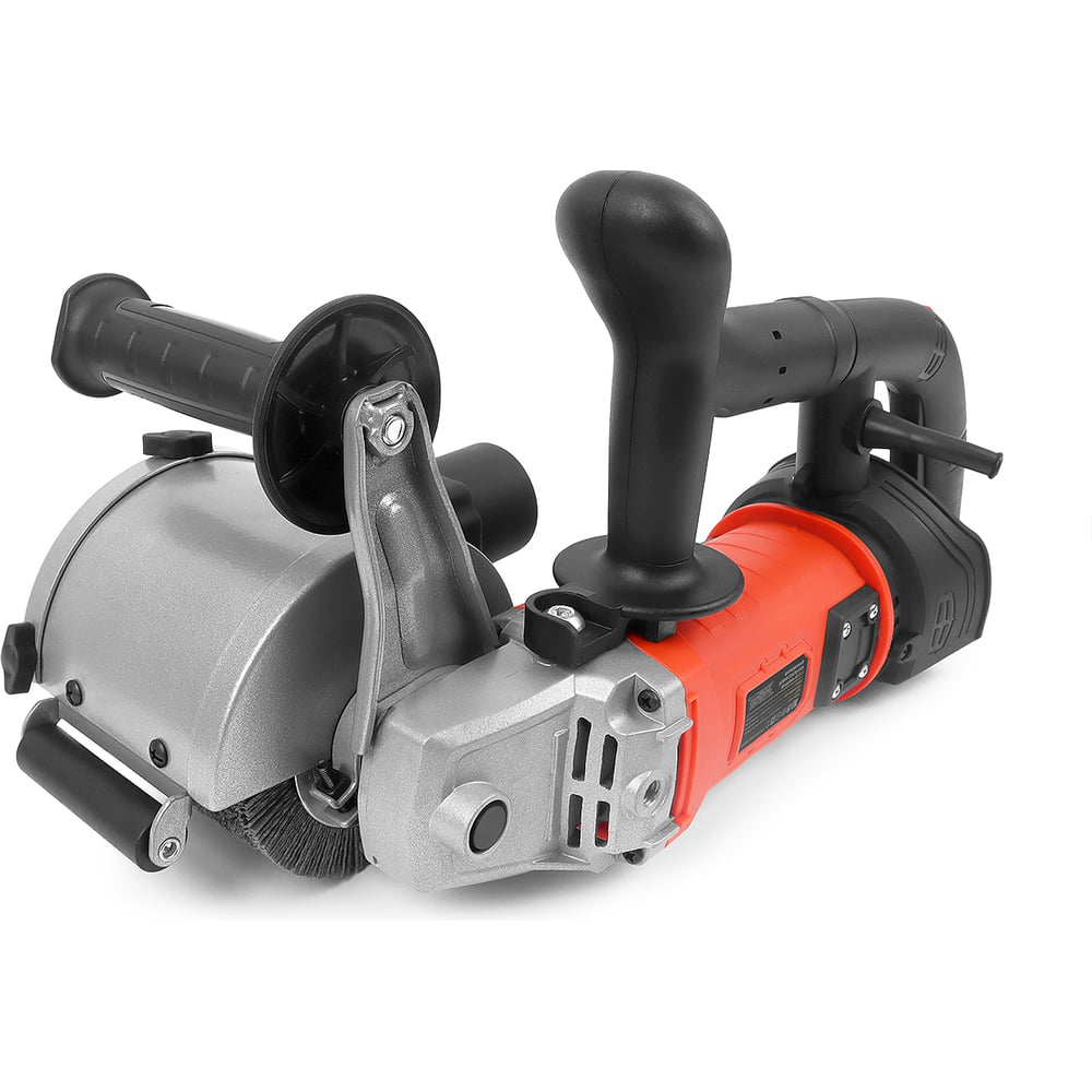 Барабанная шлифовально-полировальная машинаMESSERM3013 предназначена для обработки плоских металлических и деревянных поверхностей с помощью различных насадок.Работу барабанной шлифмашины обеспечивает мощный двигатель на 1500Вт, доступ к щеткам осуществляется без разбора корпуса инструмента, а функция плавного пуска позволит избежать неприятных рывков в начале работы и значительно снизит нагрузку на электросеть и сам двигатель.Элементы управления удобно расположены у основания рукояти. Клавиша пуск оснащена защитой от случайного включения, которая так же позволяет зафиксировать кнопку во включённом положении, что заметно облегчает пользование инструментом. Под большим пальцем располагается плавная регулировка оборотов с диапазоном от 900 до 4000 об/мин, что позволяет легко подобрать нужную скорость в зависимости от установленного барабана и обрабатываемого материалаДля замены оснастки нужно снять крышку открутив 3 болта барашка, барабан же крепиться с помощью двух сухарей, прижимного фланца и болта. На корпусе кожуха установлен направляющий ролик, и патрубок для подключения пылесоса. Ступенчатый переходник для пылесоса входит в комплект. Под патрубком находится резиновый брызговик, помогающий защитить оператора от попадания пыли и прочего мелкого мусора.