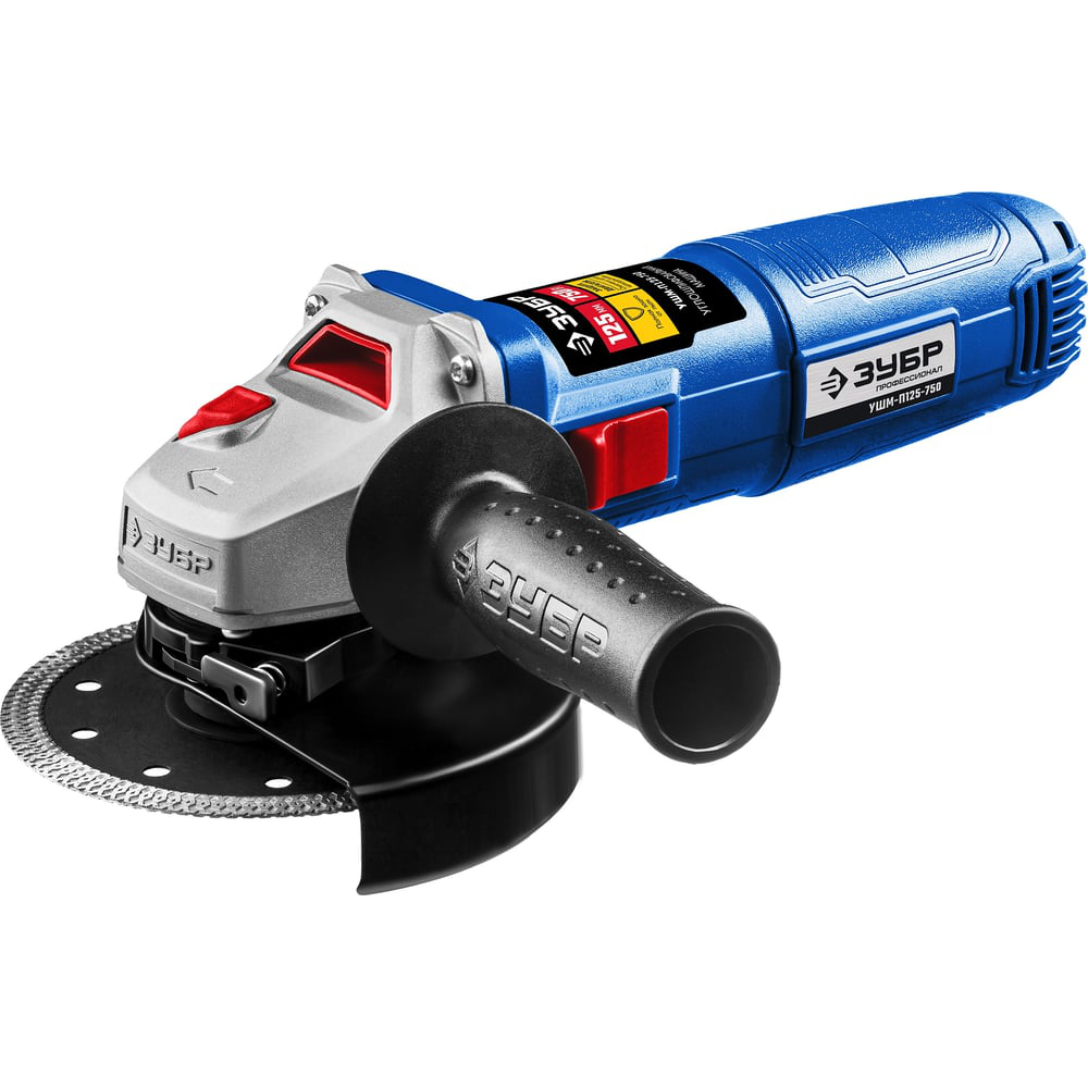 Углошлифовальная машина ЗУБР Профессионал, 125 мм УШМ-П125-750 — производительная и пылезащищенная модель для эффективной работы. Очень удобна для работы в стесненных условиях. Надежная защита основных узлов от пыли: - ротор с капроновым бандажом и дополнительным слоем защитного лака, - статор со специальным покрытием обмотки, - пылезащищенный выключатель с ультразвуковой сваркой, - лабиринтное уплотнение всех шариковых подшипников создает непроницаемый для пыли воздушный барьер Инструмент имеет поворотную часть (с шагом 90°), что позволяет настроить его под левую руку или для резки. Дополнительная рукоятка способствует надежному удержанию шлифмашины. Она может устанавливаться слева или справа, в зависимости от предпочтений оператора.