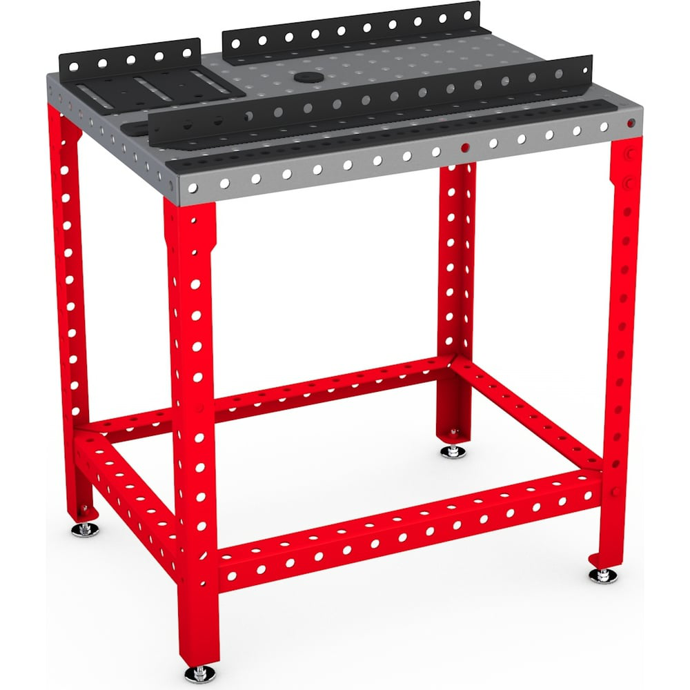 Сварочный стол FLAMES без покрытия столешницы 1527.103удобен и безопасен в работе. Имеет следующие особенности конструкции: Столешница из листового металла толщиной 3 мм, каркас из листового металла толщиной 3 мм. В столешнице отверстия диаметром 16 мм, расположенные с шагом 50 мм. Поверхности столешницы без покрытия. Стойки и стяжки окрашены порошковой краской RAL 3028 (красный). Регулируемые опоры для неровных полов входят в комплект поставки, диапазон их регулировок 25 мм.