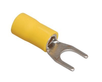 Наконечник вилочный предназначен для оконцевания опрессовкой проводов с медными жилами и используется при монтаже электрических узлов, где предусмотрено соответствующее контактное соединение на основе винтовой фиксации. Провести полный демонтаж крепежного соединения возможно, лишь ослабив винтовую фиксацию.