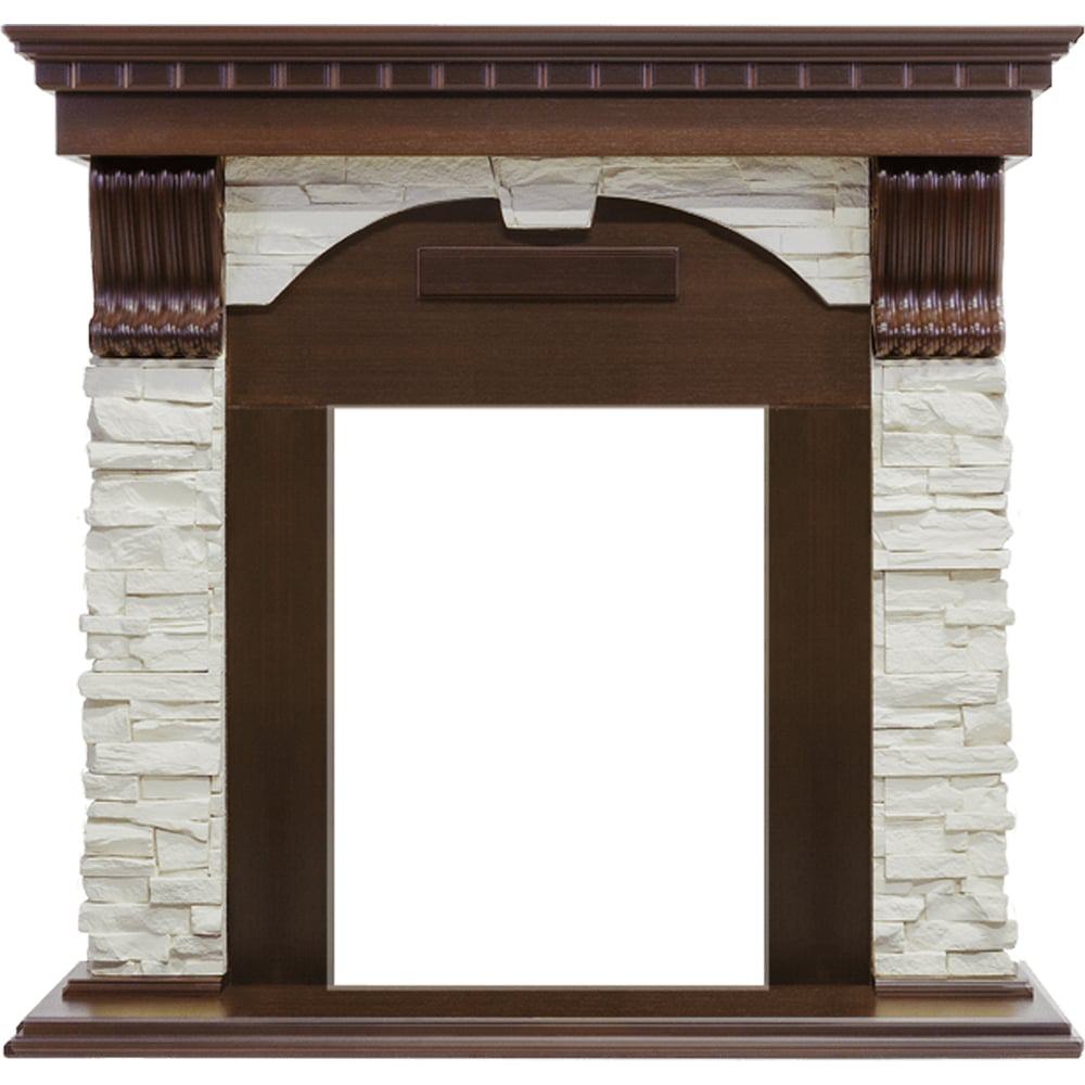 Портал Dublin выполнен в классическом стиле с античными элементами. Боковые колонны из светлого камня, стилизованного под натуральную сланцевую породу, дополнены резными узорами контрастного цвета. Столешница и постамент выполнены из дерева. Такое сочетание материалов подчеркивает изысканность портала и делает его выгодным приобретением для практических любых интерьеров. Сочетается с классическими моделями очагов бренда Royal Flame с имитацией реалистичного огня