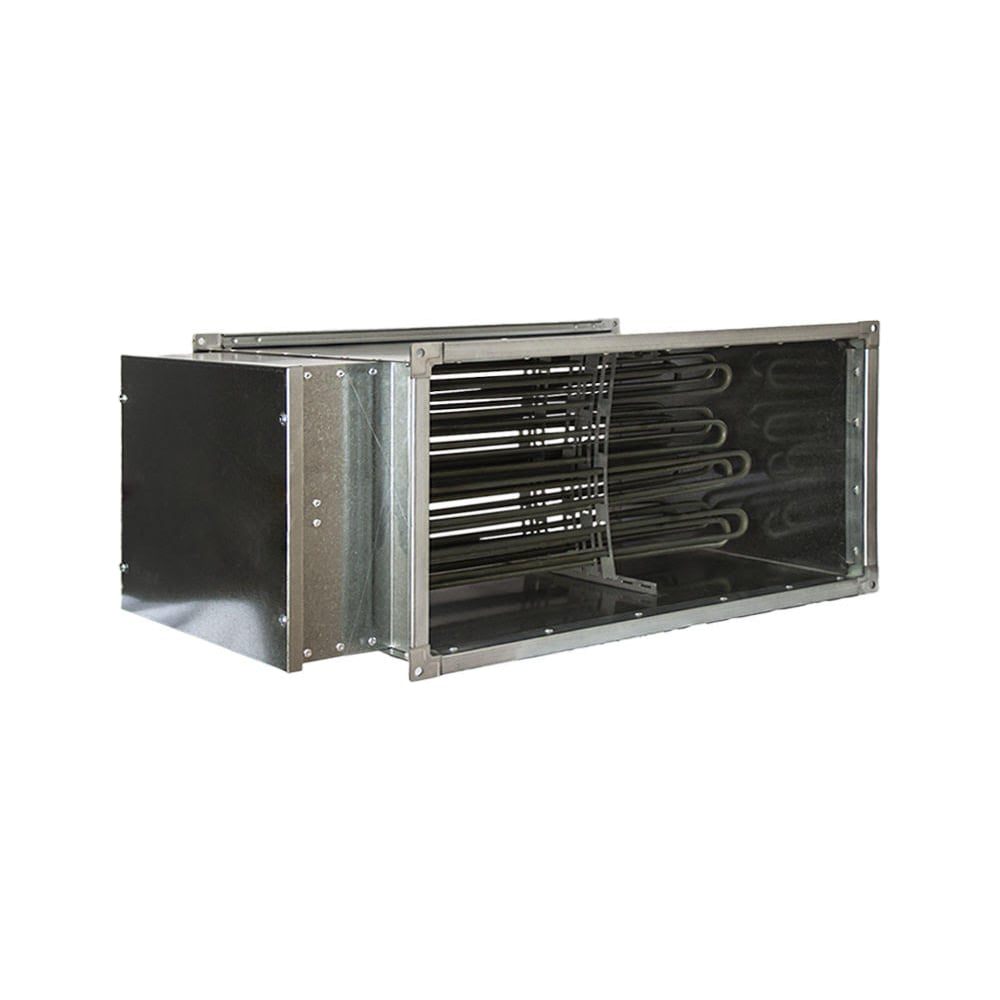Электрический канальный нагреватель для прямоугольных каналов, корпус и коммутационная коробка изготовлены из оцинкованного стального листа, нагревательные элементы из нержавеющей стали. Нагреватель изготавливается в соответствии ГОСТ 15150-69 климатического исполнения группы УХЛ 4 и должен размещаться в помещениях, защищенных от воздействия атмосферных осадков. Направление воздушного потока должна соответствовать стрелке, расположенной на нагревателе. Скорость воздуха в канале нагревателя должны быть не менее 1,5 м/с, а выходная рабочая температура не должна превышать 40 (С). В случае несоблюдения данных условий возможно срабатывание защиты от перегрева. Нагреватель может быть установлен горизонтально или вертикально. Соединительная коробка может быть расположена сверху и сбоку.