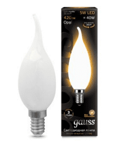 Лампа светодиодная Gauss LED Filament Candle Tailed Opal 5W E14 2700K 104201105 Производитель: GaussМощность: 5 Вт