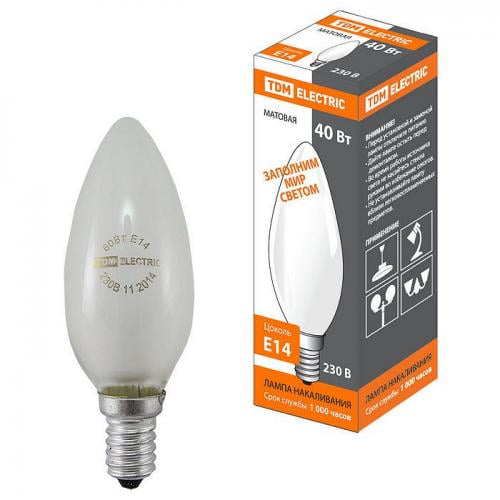 В нашем магазине «Главэлектрика» в Муроме, вы можете приобрести товар: «TDM 40Вт 230В Е14 матовая свеча» с доставкой по г. Муром.