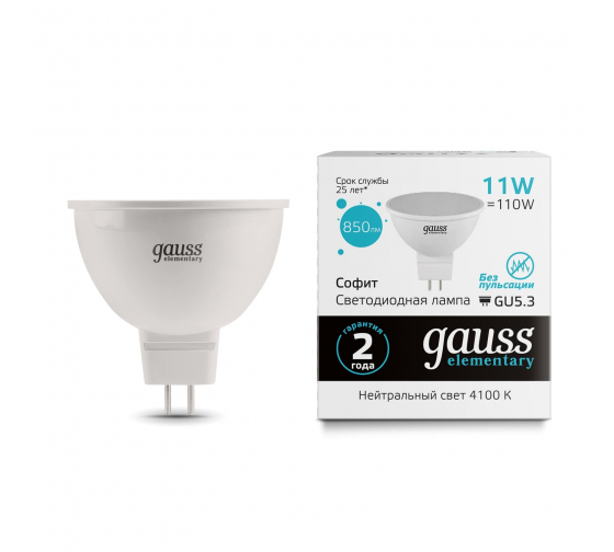 Лампа диммируемая светодиодная Gauss MR16 Elementary 11W 850lm 4100K GU5.3 MR16, 13521 - это энергоэффективное освещение для помещений, которое обеспечивает яркий свет с нейтральной цветовой температурой 4100K. Светильник имеет современный дизайн и удобный формат MR16, что делает его идеальным для использования в спотовых светильниках. Благодаря возможности диммирования, вы сможете регулировать яркость освещения в зависимости от ваших потребностей и создавать уютную атмосферу в помещении. Лампа обладает высокой яркостью 850lm и потребляет всего 11W энергии, что делает ее экономичным и долговечным решением для освещения вашего интерьера.