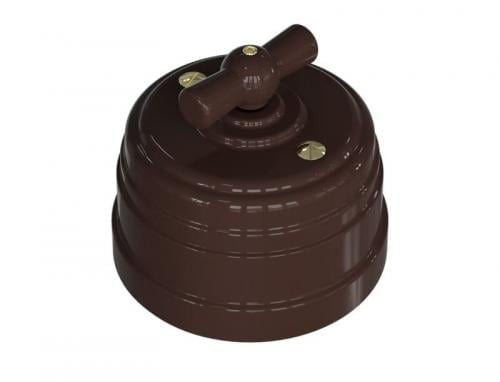 Ретро выключатель коричневого цвета GE30404-04 ТМ МезонинЪ - это стильный одноклавишный выключатель в ретро-стиле. Изготовлен из качественных материалов, он прочный и надежный. Проходной выключатель из серии Усадьба идеально впишется в интерьер загородного дома или квартиры в классическом стиле. Удобный в использовании, этот выключатель станет надежным помощником в вашем доме.