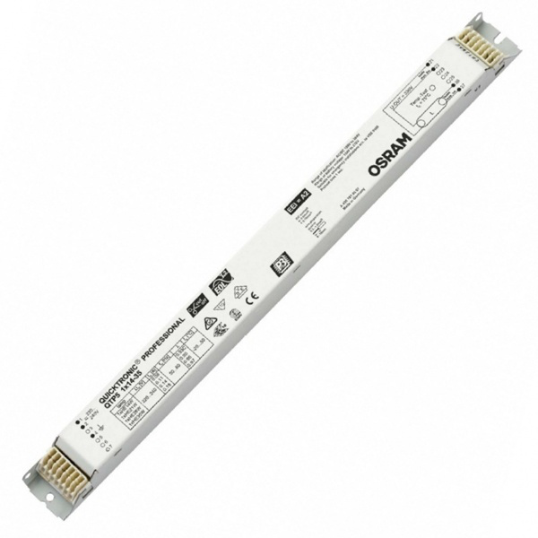 ЭПРА QTP5 1X14-35220-240V VS20 OSRAM – электронный пускорегулирующий аппарат для люминесцентных трубчатых ламп Т5. Такие лампы имеют цоколь типа G5 и обладают компактными размерами. Габариты самого устройства составляют 280х30х21 миллиметр. ЭПРА гарантирует их автоматическое отключение при окончании срока службы. Аппарат предназначен для использования в общественных зданиях и промышленных помещений, спортзалах.QTP5 1X14-35220-240V VS20 OSRAM гарантирует стабильное освещение и увеличение срока службы лампы. На качество работы ЭПРА не влияет его частое включение и выключение. Устройство автоматически перезапускается после замены лампы. Номинальное напряжение прибора составляет 220-240 вольт.