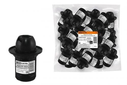 Патрон E14 с кольцом, термостойкий пластик, черный, TDM - это электрический патрон для ламп с цоколем E14, изготовленный из высококачественного термостойкого пластика. Черный цвет патрона придает ему стильный и современный вид, который подойдет к любому интерьеру. Патрон обеспечивает надежное и безопасное соединение лампы с электрической проводкой. Продукт отличается высокой прочностью и долгим сроком службы, что делает его идеальным выбором для использования в различных светильниках и световых устройствах.