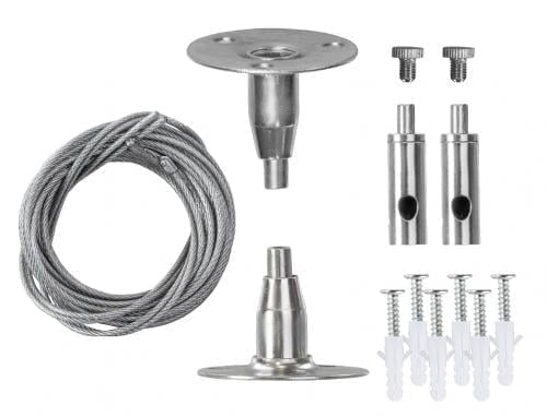 В комплект PTR S-2.0m входит два крепления, винты и саморезы. Материал подвеса для трека PTR S-2.0m – стальной трос с прорезиненным покрытием.