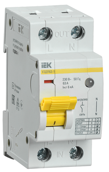 Номинальный ток у УЗМ-50МД 63 А, у IEK63-1 40 А, таким образом УЗМ-50МД подойдет для частного дома или квартиры где электропитание осуществляется по однофазной сети 220 В в качестве вводного защитного устройства как от повышенного напряжения, так и от дугового пробоя. IEK63-1 с номинальным током в 40 А выглядит слабовато для квартиры с электроплитой или для частного дома. В тех же новостройках с электроплитами вводные АВ на квартиры идут номиналом в 50 А от застройщика. УЗМ-50МД обладает функцией самовзвода, другими словами, если искрение (дуговой пробой) прекратилось, либо входное напряжение выровнялось, устройство вновь включит линию автоматически. IEK63-1 такой функцией не обладает. А это означает, что для повторного включения линии его нужно взводить вручную. В квартире это не создаст много неудобств, а вот если такое случится в частном доме, где узел учета и все вводные защитные устройства располагаются чаще всего за границей участка на опоре ЛЭП, да еще и ночью, да еще и зимой, то тут уже явные неудобства.