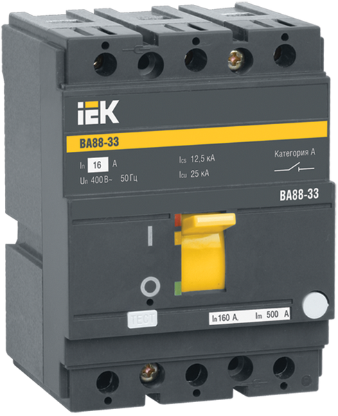 2. Выключатель автоматический промышленного типа. Надежно защищен металлическим корпусом от внешних повреждений. Используют его для защиты промышленных распределительных цепей. Место установки — крупные щитовые подстанции. Находит применение в качестве переходника для подключения мощного производственного оборудования.