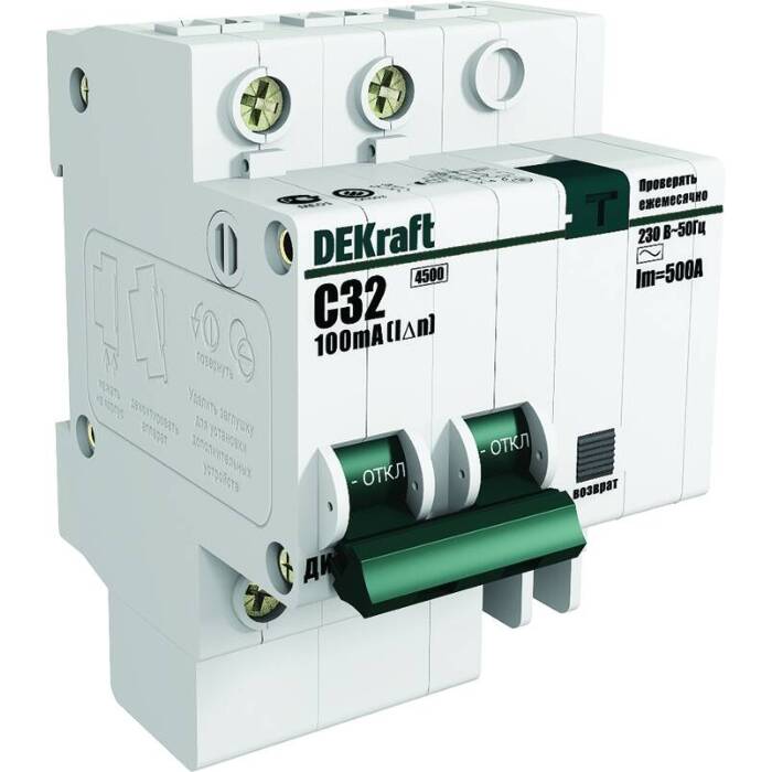 Дифавтомат DEKraft ДИФ-101 также оснащен дифференциальным модулем, который обнаруживает утечку тока на заземление. В данной модели утечка тока на заземление обнаруживается при значении 100 мА переменного тока (AC). Это позволяет обеспечить безопасность электрической сети и предотвратить возможные поражения электрическим током.