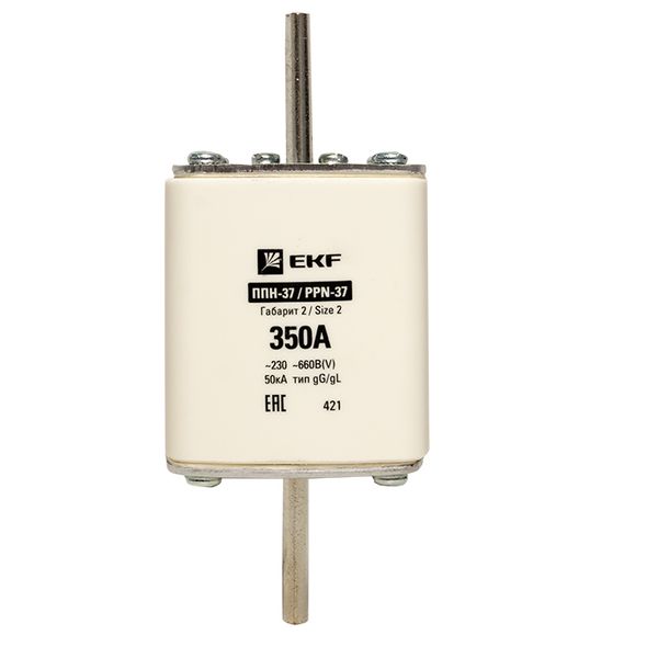 Плавкая вставка ППН-37 400/350А габарит 2 EKF. Предохранители плавкие ППН EKF, укомплектованные плавкими вставками типа gG/gL, предназначаются для защиты кабельных линий и промышленных электроустановок от токов перегрузки и короткого замыкания. Предохранители применяются в электрических сетях переменного тока частотой 50 Гц с напряжением до 660В. Применяются для крепления в распределительных и вводно-распределительных устройствах. Предохранители плавкие ППН могут устанавливаться в основание с держателем, а также в специально предназначенные рубильники. В комплект поставки предохранителей плавких ППН основание с держателем не входит и приобретается отдельно.