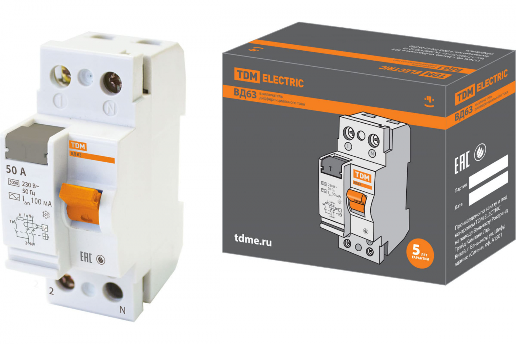 УЗО TDM Electric ВД63 2P 50А 3 кА, 100 мА (AC), SQ0220-0021 - это надежное устройство защиты от утечки тока и короткого замыкания. Специально разработанное для использования в бытовых и промышленных электрических системах, данное устройство обеспечивает безопасность и надежность электроснабжения.УЗО TDM Electric ВД63 имеет номинальный ток 50А и выдерживает короткое замыкание до 3 кА. Срабатывание при утечке тока на уровне 100 мА (AC) обеспечивает быструю реакцию и предотвращает возможные аварийные ситуации.