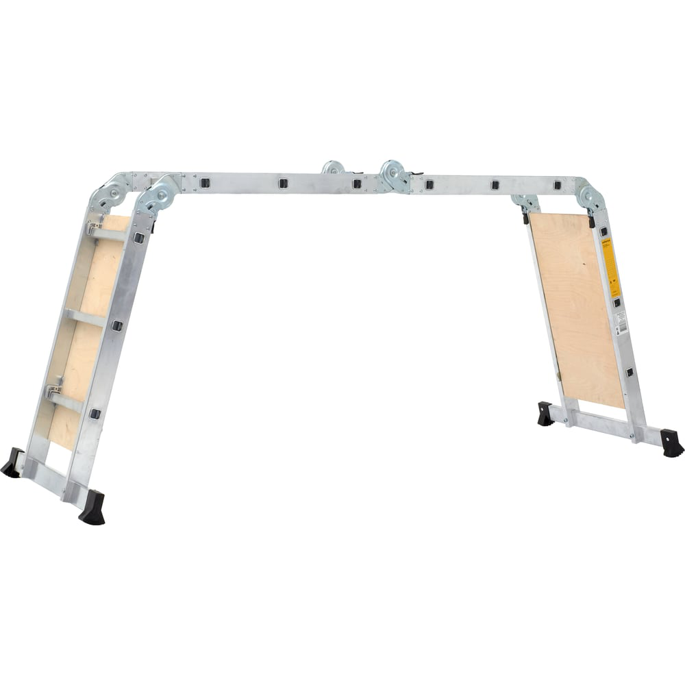 Лестница-трансформер с помостом Inforce 4x3 ЛП-Т-4-3-П выполнена из российского алюминиевого профиля. Легко трансформируется в несколько рабочих положений. Работа на небольшой высоте. Помост позволяет добиться максимального удобства при работе с лестницей. Используется при работе на широком участке и небольшой высоте. Прочность. Качественный профиль позволяет ей выдерживать нагрузку до 150 кг. Универсальность. Модель можно использовать в качестве стремянки, платформы, приставной и приставной оттянутой лестницы. Отличная устойчивость. Широкие поперечные траверсы и антискользящие пластиковые наконечники не дают лестнице смещаться.